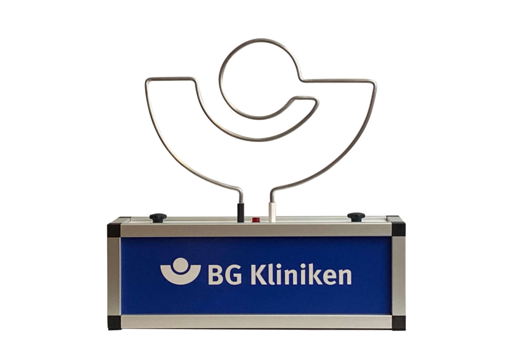 Jeder kennt den heißen Draht: Es gilt, den Führungsstab ohne Berührung des elektrisch geladenen Drahts ins Ziel zu bringen. Behalten Sie eine ruhige Hand – Spannung garantiert!